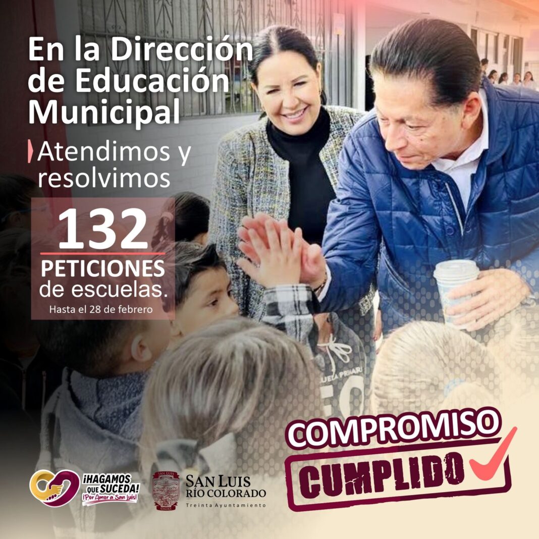 San Luis Río Colorado, Sonora (Marzo 05 de 2025).- Con la creación histórica de la Dirección de Educación Municipal, el 30 Ayuntamiento ha atendido 132 solicitudes de servicios, mantenimiento e infraestructura en escuelas locales, así lo comunicó la titular de la dependencia, Eloina Mendoza Puebla.