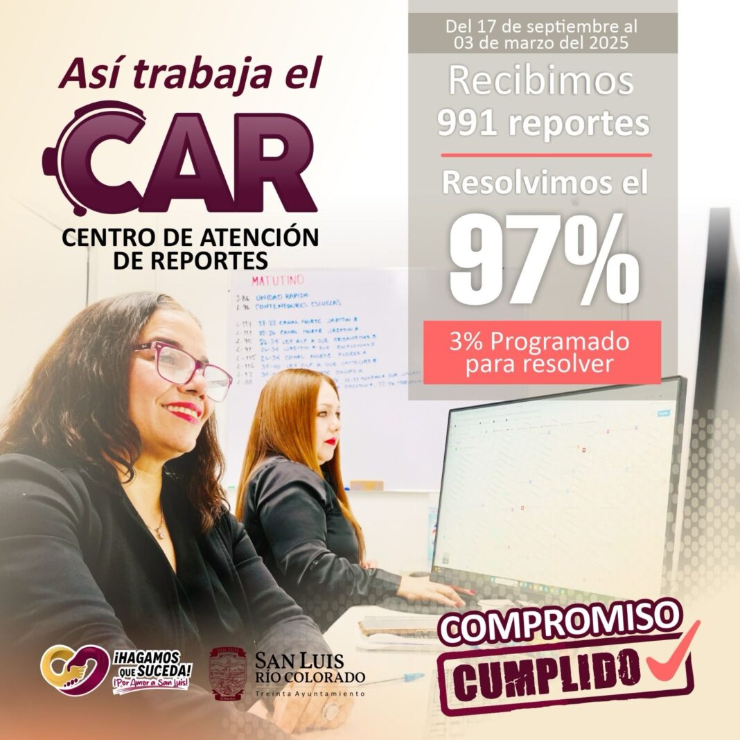 San Luis Río Colorado, Sonora (Marzo 07 de 2025).- Con el firme compromiso de mejorar la calidad de vida en el municipio, el 30 Ayuntamiento, ha logrado atender un total de 991 reportes ciudadanos desde el 17 de septiembre del 2024 al 3 de marzo de 2025.