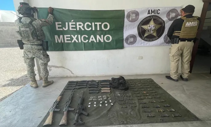 En Caborca, se aseguraron tres armas largas, 20 cargadores, 500 cartuchos, 10 dosis de metanfetamina y 10 dosis de marihuana. En Hermosillo, se aseguraron 792 plantas de marihuana y un invernadero con sistema de climatización para controlar la temperatura, humedad y la circulación de aire.