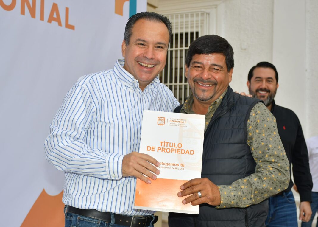 Hermosillo, Sonora; 14 de marzo de 2025.- El presidente municipal Antonio Astiazarán concretó un añejo anhelo de ciudadanas y ciudadanos que por años habían permanecido como posesionarios de los lotes en que fincaron sus casas, al entregarles los títulos de propiedad de dichos inmuebles, con lo que obtuvieron tranquilidad y certeza jurídica.