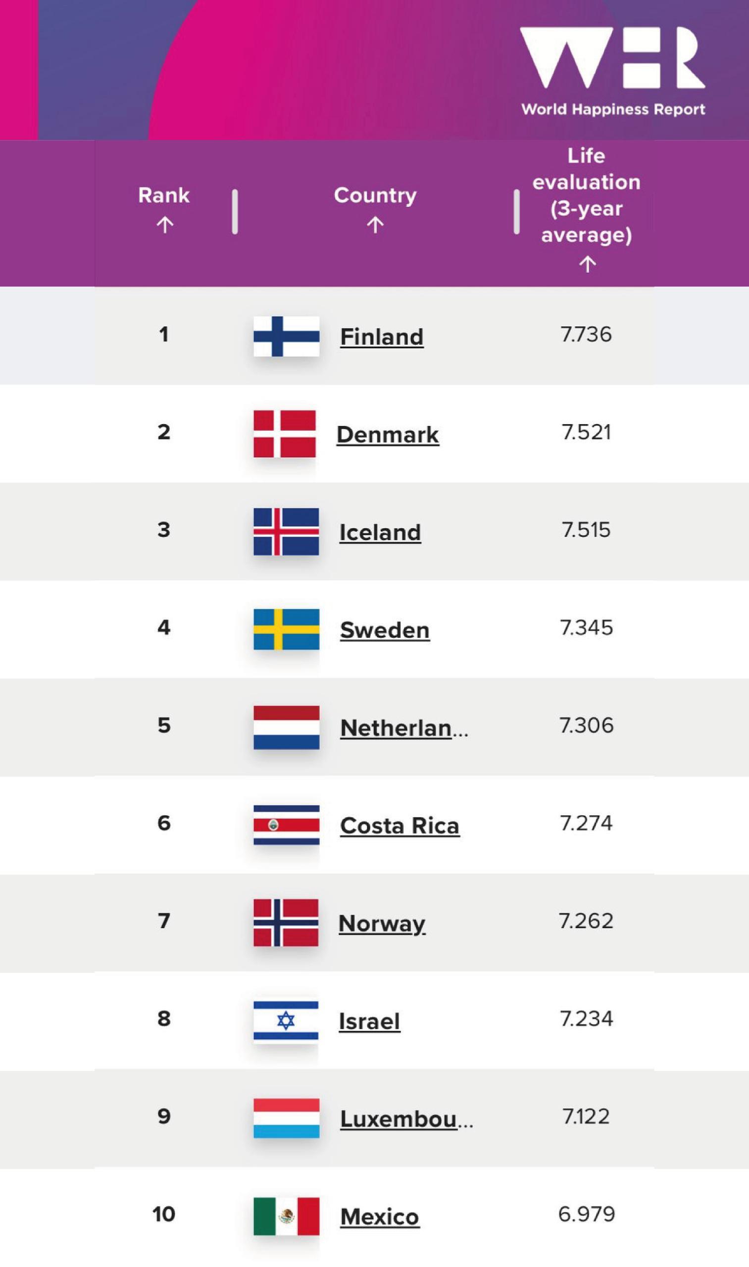 No es ocioso identificar qué otros países están en este índice, me llamo mucho la atención que naciones de la Europa nórdica cómo es el caso de Finlandia, Noruega, Países Bajos, Suecia y otros más ocupen los primeros lugares y que en el sexto lugar se haya ubicado una nación del Caribe como es Costa Rica.