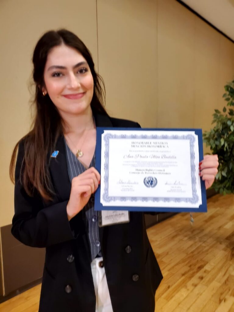 Expuso que, por su parte, la alumna Ana Paula Ulloa Badilla (del plantel Profesor Ernesto López Riesgo) obtuvo mención honorífica como delegada del comité bilingüe del Consejo de los Derechos Humanos del Comité Mexicano AzMUN de FIELSC. Ella asistió al Modelo de Naciones Unidas en Arizona junto con estudiantes de Sonora y de diferentes partes de México y Estados Unidos.
