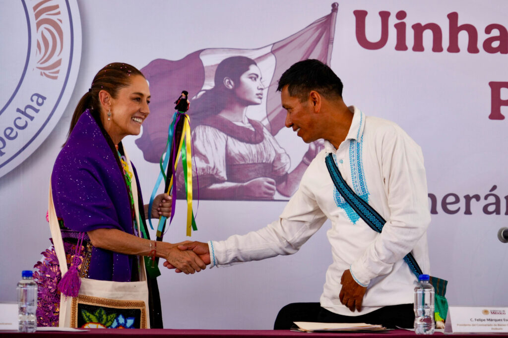 “En mi caso no sería lo que soy si no fuera gracias al pueblo p’urhépecha y lo que aprendí en estas tierras (…) Y hoy lo primero que quiero decirles es: gracias, gracias por haberme recibido hace 42 años; gracias por haberme recibido cuando estuve en campaña y gracias el día de hoy por recibirnos”, agregó.