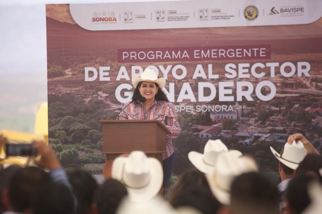 La funcionaria estatal estuvo acompañada por el alcalde anfitrión, Conrado Durazo Montaño; Juan Ochoa Valenzuela, presidente de la Unión Ganadera Regional de Sonora; David Mendoza Rivas, director del Consejo Estatal para la Concertación de la Obra Pública (Cecop); y el diputado federal Ramón Flores.