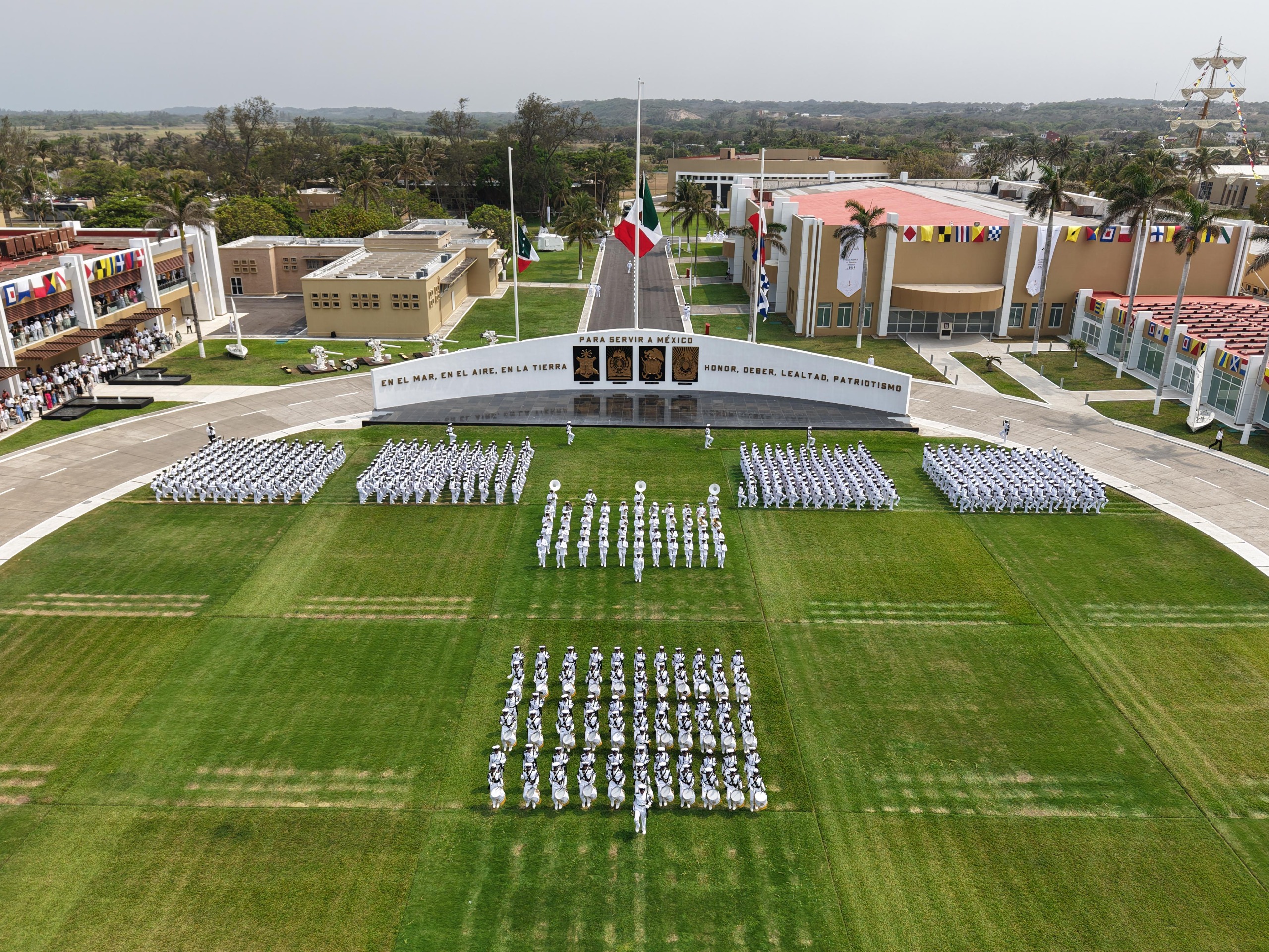 Como parte de la Ceremonia Conmemorativa, la Jefa del Ejecutivo Federal realizó el pase de lista de héroes de la Heroica Escuela Naval Militar y el Colegio Militar, apreció el Toque de Silencio de la Banda de Guerra y una salva de fusilería ejecutada por las brigadas del Cuerpo de Cadetes en memoria de quienes el 21 de abril de 1914 y el 13 de septiembre de 1847, respectivamente, ofrendaron sus vidas en defensa de la patria; y posteriormente, tomó protesta al personal de Cadetes de Primer Año de la Heroica Escuela Naval Militar.