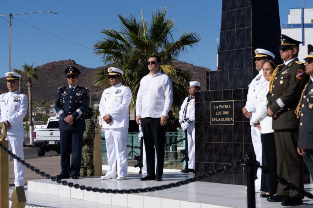 En representación del gobernador Alfonso Durazo Montaño, asistió el secretario de Gobierno del Estado, Adolfo Salazar Razo, acompañado por la presidenta municipal de Guaymas, Karla Córdoba González, y el Vicealmirante Daniel Escobedo Escobedo, comandante de la Sexta Región Naval, quien encabezó el acto solemne.