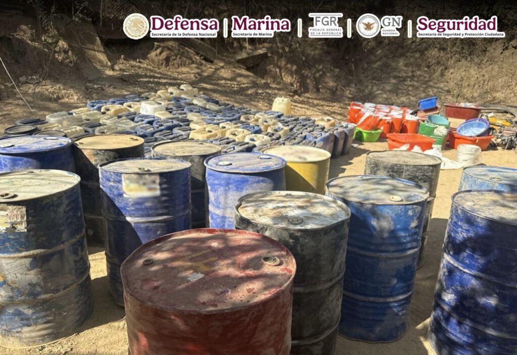 Ciudad de México, a 24 de abril 2025, Comunicado conjunto. En el marco de la Estrategia Nacional de Seguridad, en Tamazula, Durango, en una acción liderada por elementos de la Secretaría de Marina (Semar) y la Fiscalía General de la República (FGR), junto con la Secretaría de la Defensa Nacional (Defensa), Guardia Nacional (GN) y Secretaría de Seguridad y Protección Ciudadana (SSPC), se destruyeron dos laboratorios clandestinos y se aseguraron más de 150 kilos de metanfetamina.