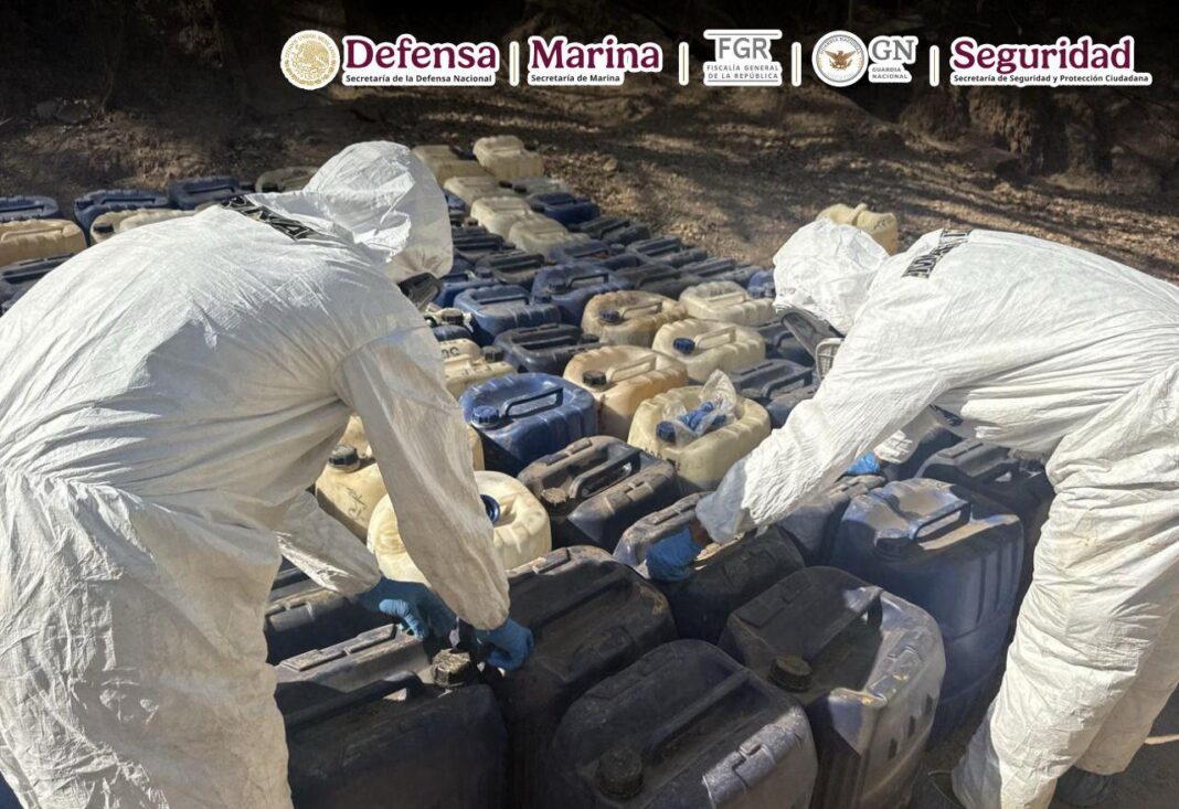 También se aseguraron 11,850 litros y 360 kilos de sustancias químicas