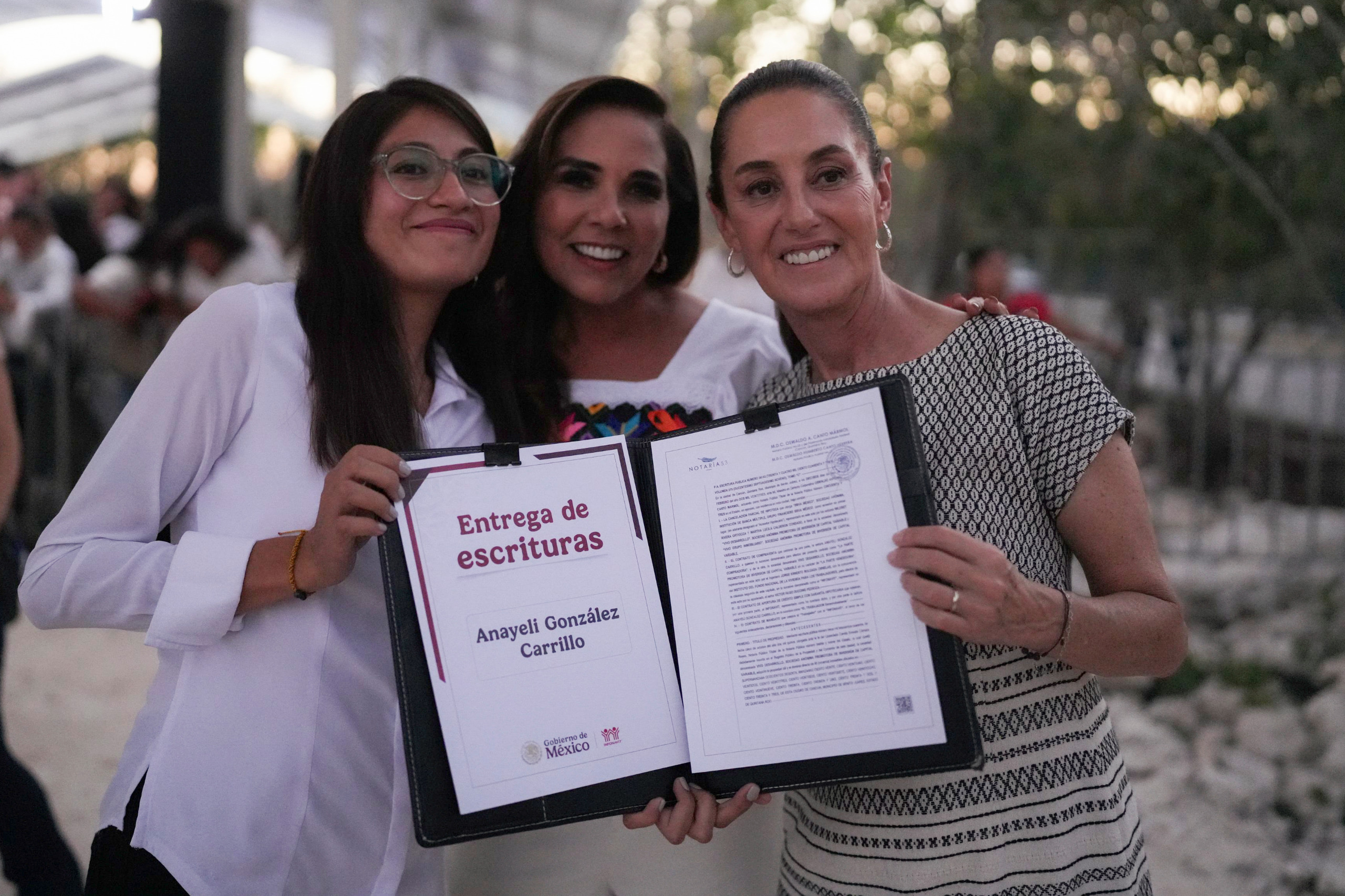 Acompañaron a la Presidenta de México en el evento, la secretaria de Desarrollo Agrario, Territorial y Urbano, Edna Elena Vega Rangel; el secretario de Infraestructura, Comunicaciones y Transportes, Jesús Antonio Esteva Medina; el director general de la Conavi, Rodrigo Chávez Contreras; el director general del Instituto Nacional de Suelo Sustentable, José Alfonso Iracheta Carroll; el secretario técnico de la Presidencia de la República y coordinador general de Programas para el Bienestar, Carlos Torres Rosas; la coordinadora general de Asuntos Intergubernamentales y Participación Social de la Presidencia de la República, Leticia Ramírez Amaya; el director general del Instituto Nacional de Migración, Sergio Salomón Céspedes Peregrina; la presidenta municipal de Benito Juárez, Ana Patricia Peralta; así como beneficiarias y beneficiarios del FOVISSSTE e Infonavit.