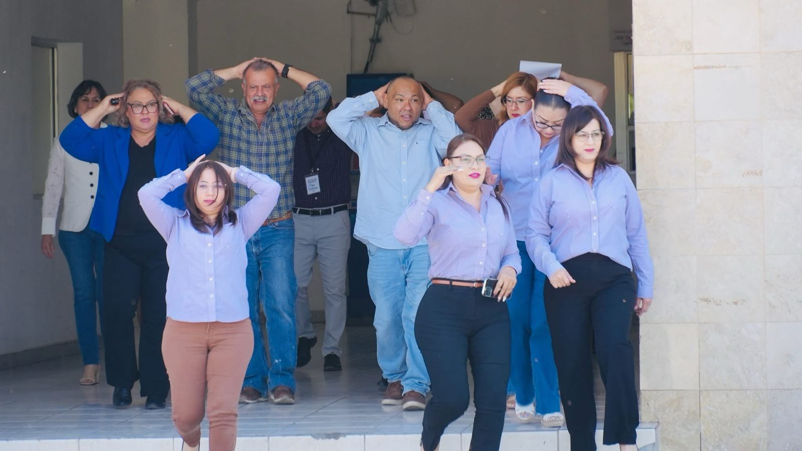 Encabezado por el alcalde César Iván Sandoval Gámez, el simulacro se realizó a las 10:30 horas, con una evacuación coordinada desde Palacio Municipal, así como de oficinas de Gobierno del Estado.