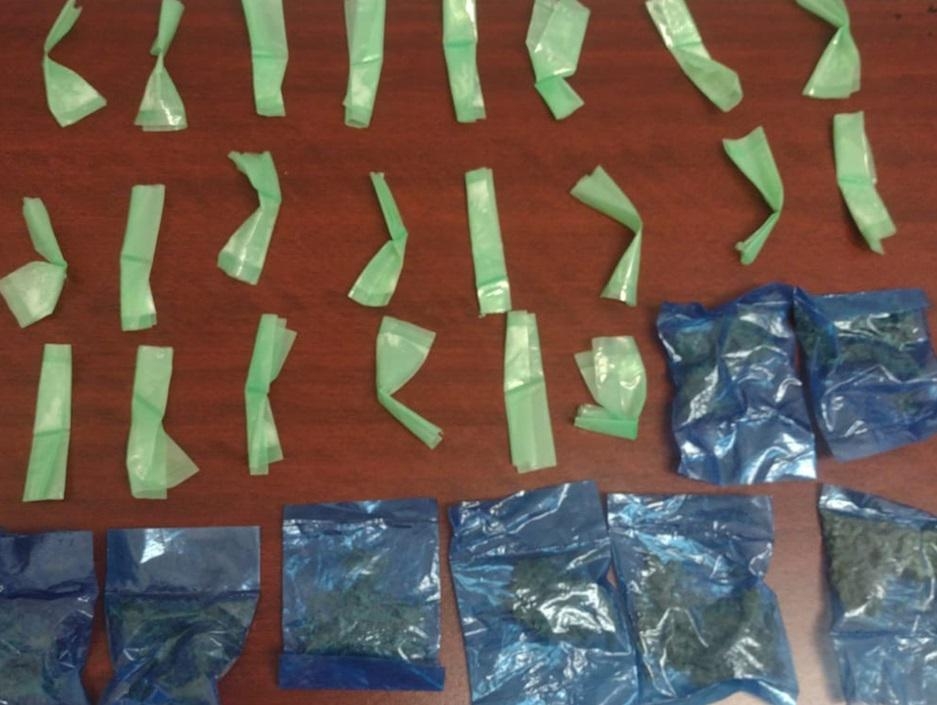 Durante la inspección, le fueron asegurados 22 envoltorios con sustancia granulada, al parecer narcótico, y ocho más con hierba verde.
