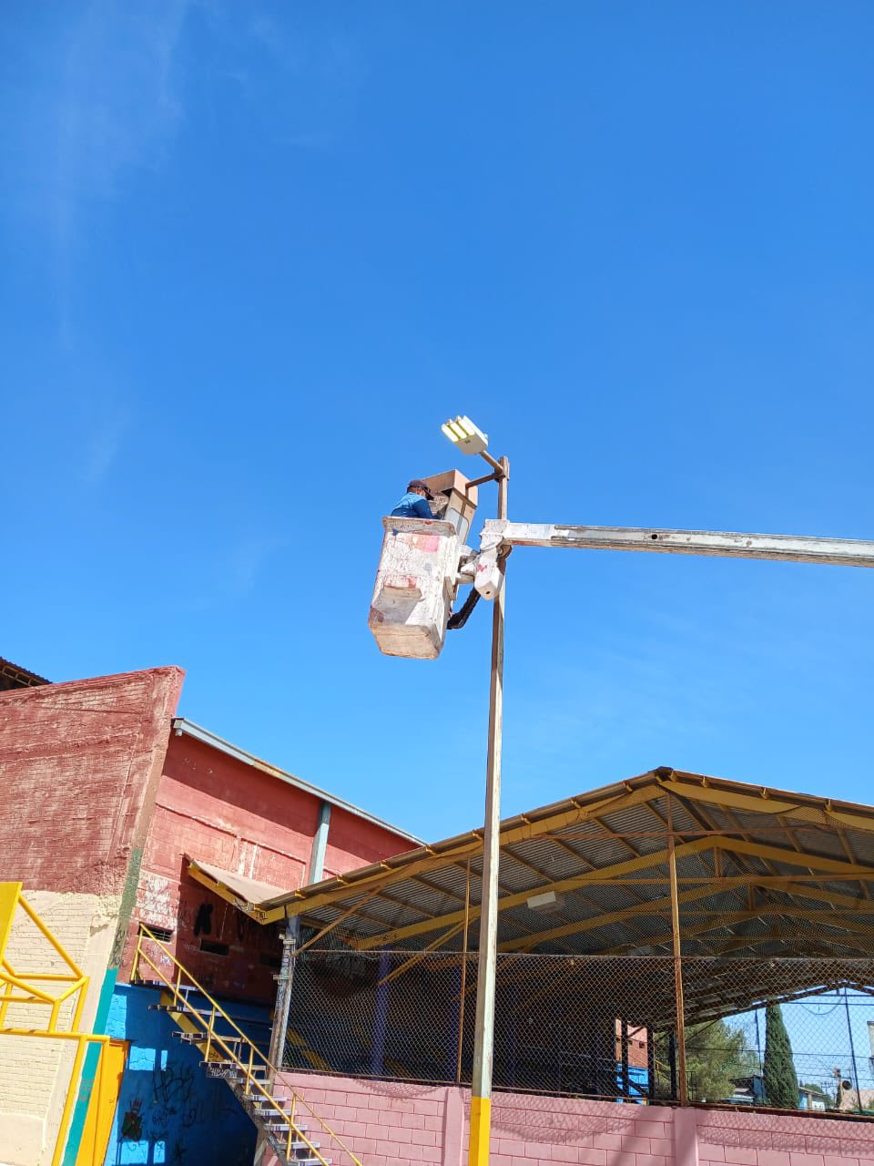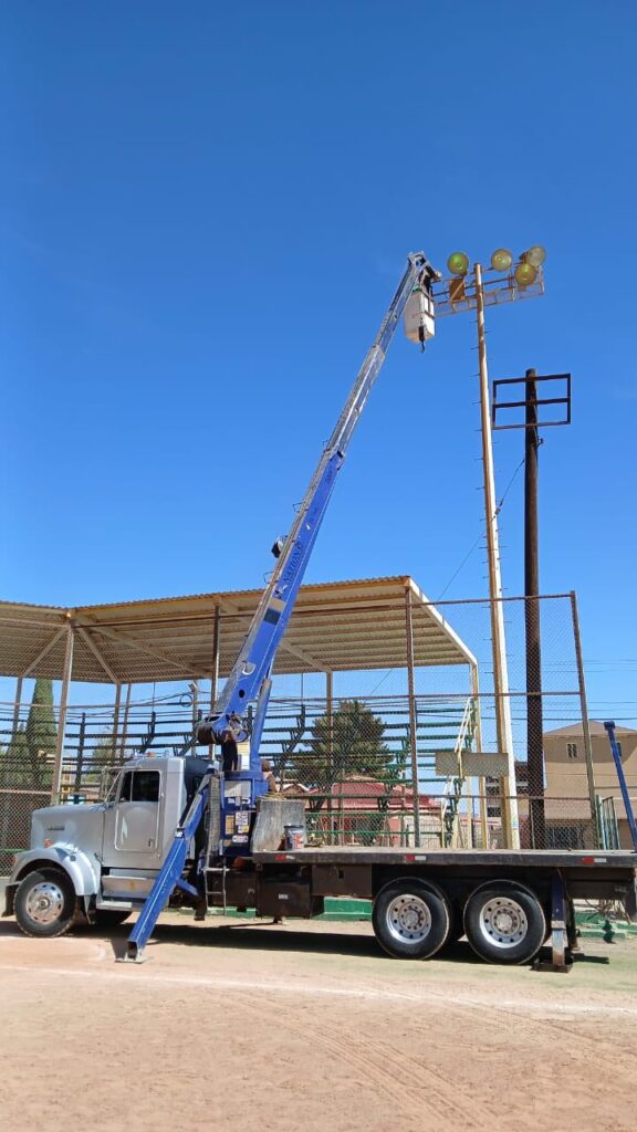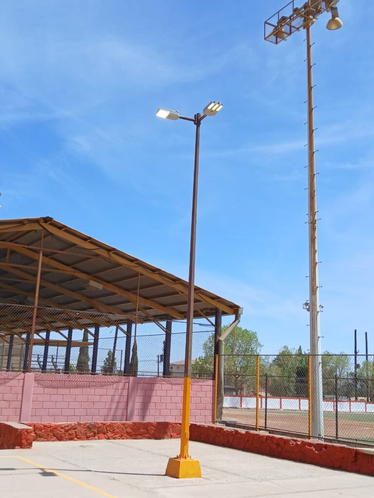 La Dirección de INMUDE informa que este día se realizó la instalación de nuevas lámparas en el campo de sóftbol y en las canchas ubicadas detrás del gimnasio municipal, específicamente en la cancha número 2, que no está techada y que llevaba aproximadamente 8 años sin iluminación.