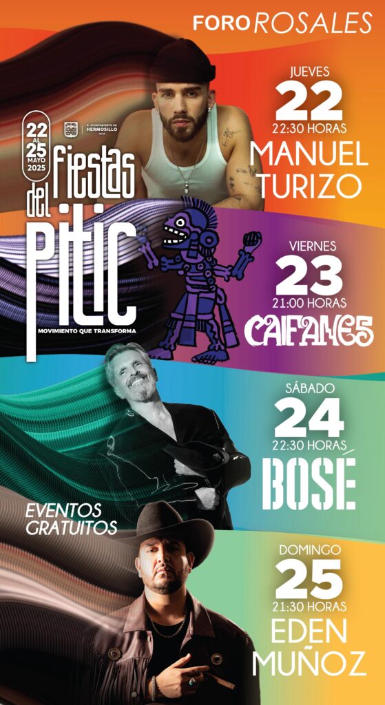 Hermosillo, Sonora; 19 de mayo, 2025.- Sólo faltan 3 días para el inicio de Las Fiestas del Pitic 2025 “Movimiento que transforma”, que con música, teatro, danza, artes visuales, cine y literatura será la celebración que una a hermosillenses y visitantes por el 325 aniversario de la fundación de la ciudad.