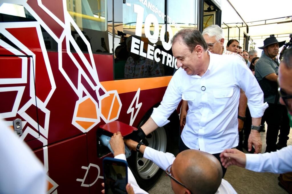 Hermosillo, Sonora; 21 de mayo de 2025.– Con la inauguración de la primera electrolinera pública del estado y la puesta en marcha de tres unidades eléctricas, el gobernador Alfonso Durazo Montaño marca un antes y un después en el sistema de transporte en la entidad, como resultado de la implementación del Plan Sonora para impulsar un sistema de electromovilidad público, sustentable y moderno al servicio de las y los sonorenses.