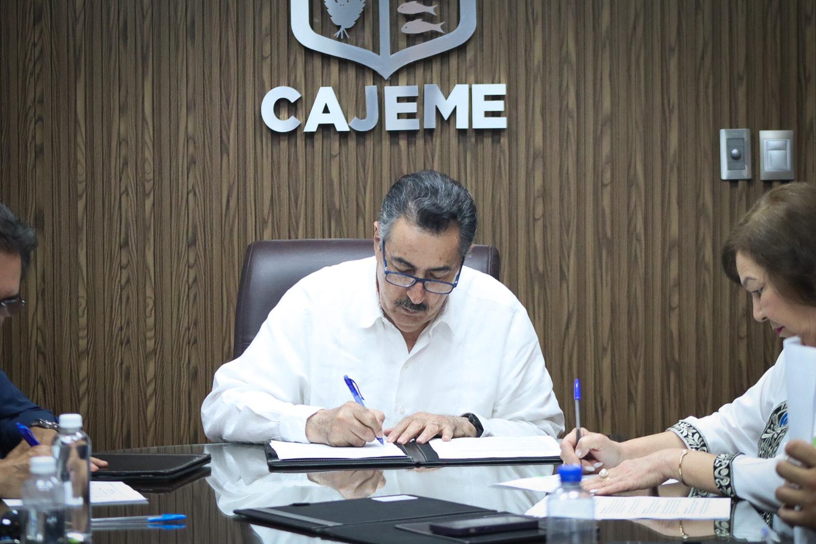 En un encuentro positivo y de resultados mutuamente satisfactorios, el Presidente Javier Lamarque, autoridades municipales y representantes del sector empresarial, signaron un convenio con el Gobierno del Estado, a través de SIDUR y Proyecto Impulsor, en el que retomaron el acuerdo para llevar a cabo la rehabilitación del Parque Industrial con perspectiva estratégica para impulsar el desarrollo económico de Cajeme.