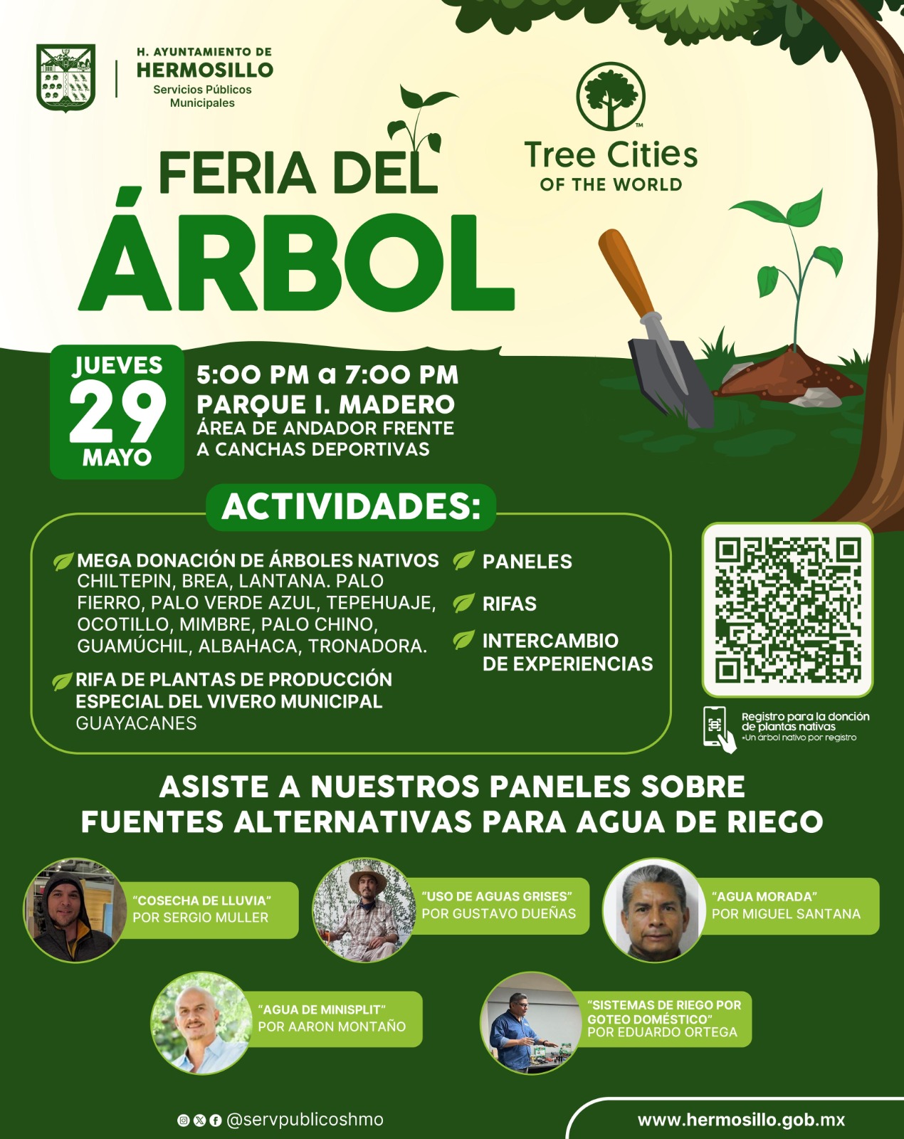 Personas interesadas en registrarse para recibir un árbol lo pueden hacer a través del código QR o redes sociales del Ayuntamiento de Hermosillo como @HermosilloGob en Twitter e Instagram y Gobierno de Hermosillo en Facebook.
