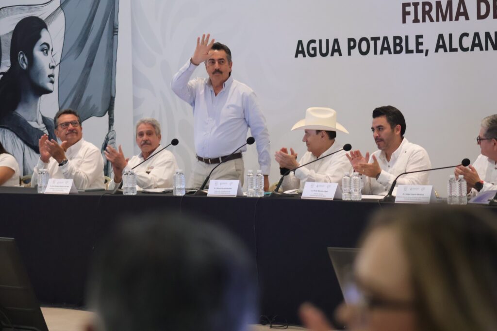 Con el objetivo de contribuir al cumplimiento del derecho humano al agua y saneamiento, el Alcalde Javier Lamarque y el Gobernador Alfonso Durazo encabezaron la firma del convenio de planes integrales municipales de agua potable, alcantarillado y saneamiento para el estado de Sonora, evento que reunió en Cajeme a las y los 72 Presidentes y Presidentas Municipales de la entidad.