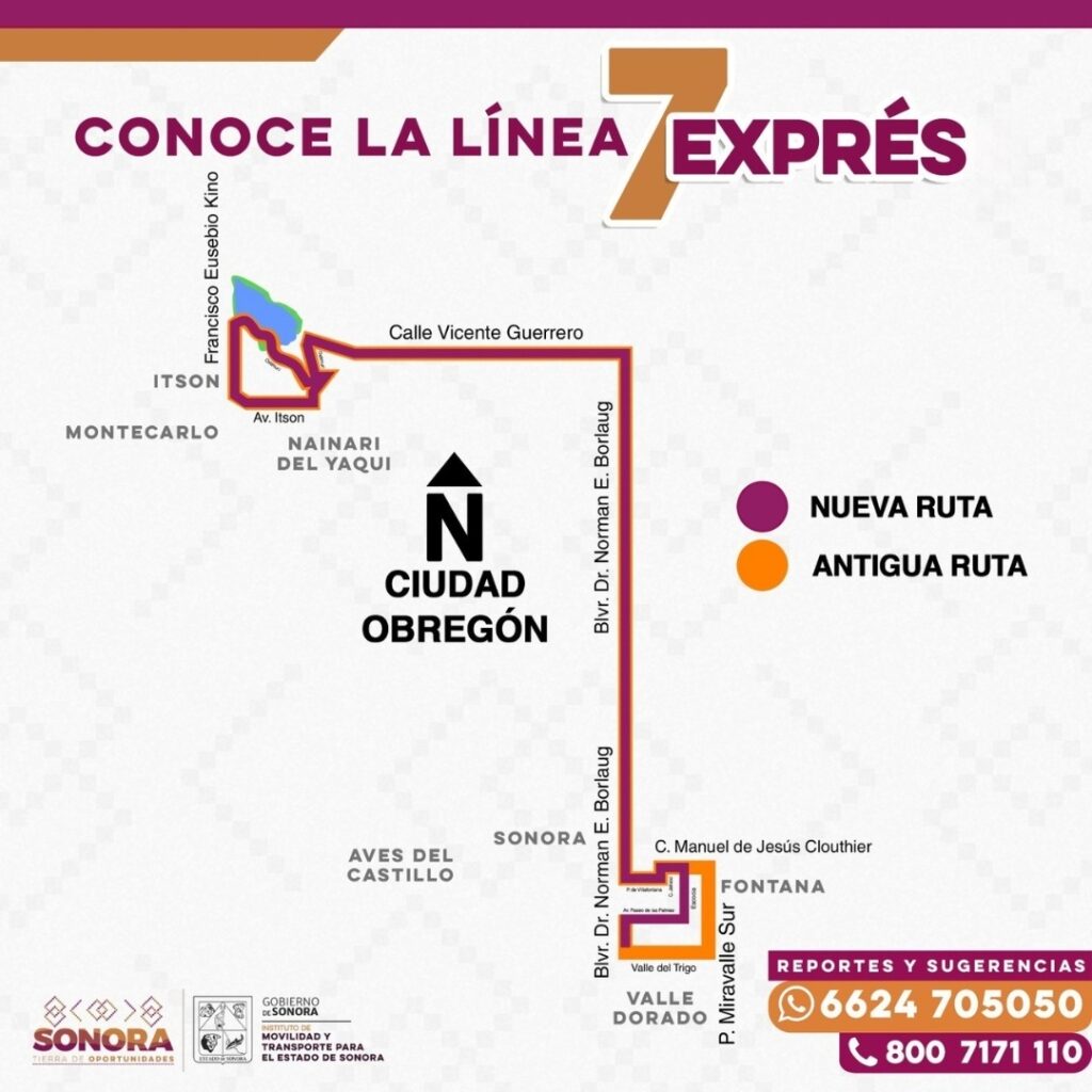 Línea 7 Exprés: Se recorta el recorrido de la ruta, ofreciendo servicio al norte, centro y sur de la colonia Villa Fontana, así como a la parte este de Valle Dorado. El número de unidades aumenta de dos a cinco, reduciendo los tiempos de espera de 50 a 20 minutos.
