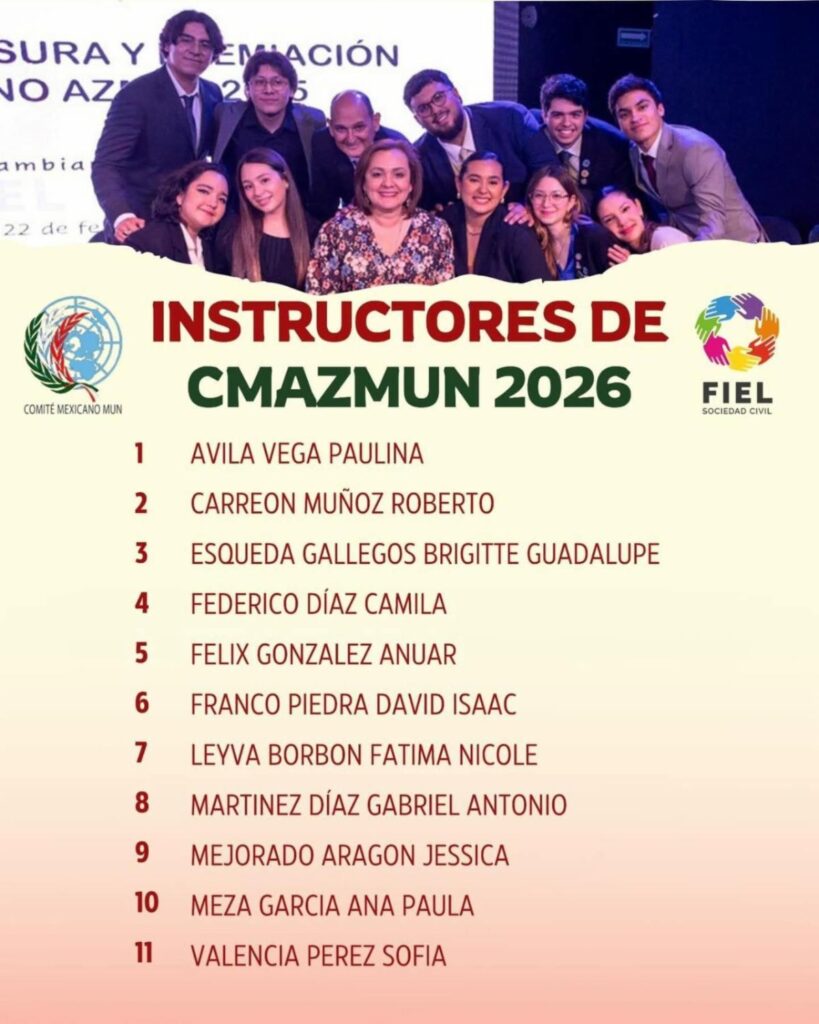 Tras la convocatoria emitida por el Comité Mexicano AzMUN de Fielsc y el Modelo de Naciones Unidas de la Universidad de Arizona, a la que respondieron 30 aspirantes, se llevó a cabo la selección de Brigitte Guadalupe, quien participará en la preparación y asesoría de delegados estudiantiles que asistirán a la 64.ª Conferencia AzMUN, que se realizará en marzo de 2026.