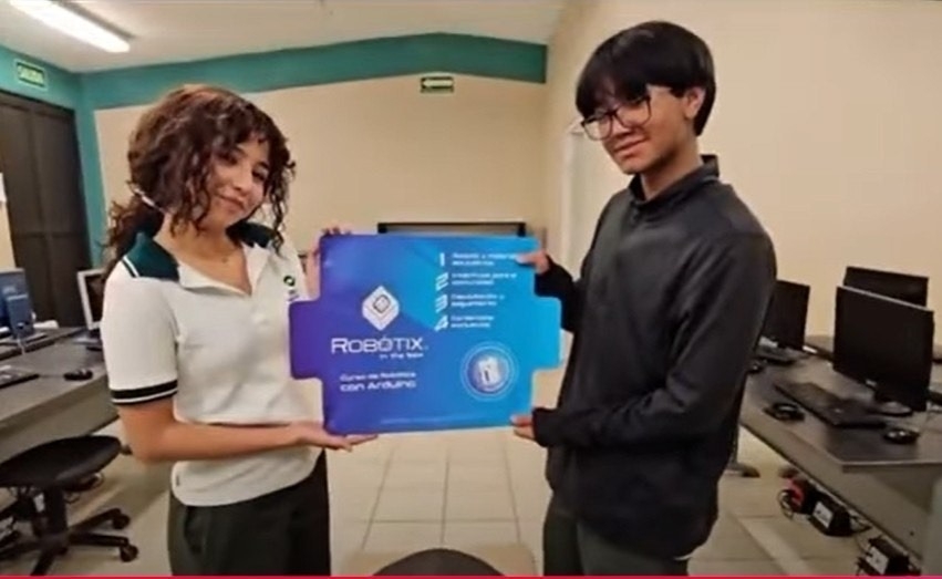 Hermosillo, Sonora; 16 de junio de 2025.- Danna Kamila Encinas Alcaraz y Geovanny Cabral Zavala, estudiantes del Colegio de Educación Profesional Técnica del Estado de Sonora (Conalep), junto con su asesora América Valenzuela, obtuvieron el segundo lugar en el concurso nacional “RobotiX.Faire 24-25”.