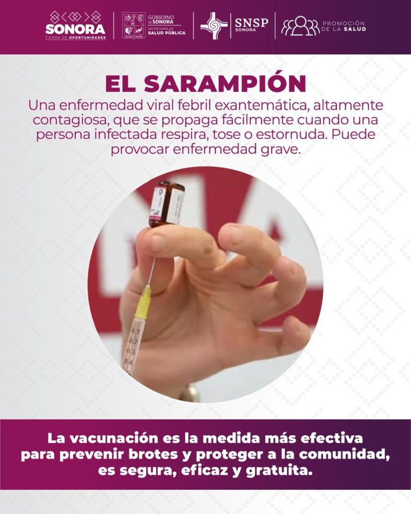 Hermosillo, Sonora; 17 de junio de 2025.- Como medida de prevención, el Gobierno de Sonora, a través de la Secretaría de Salud (SSP), hizo un llamado a la población a revisar la Cartilla Nacional de Salud y verificar que niñas y niños cuenten con la vacuna contra el sarampión. En caso de no tenerla, se debe acudir a los macrocentros para solicitar el biológico y así estar protegidos contra este padecimiento.