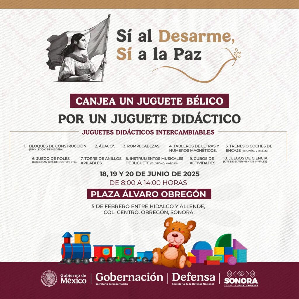 El Gobierno Municipal hace una atenta invitación a la población para participar en el programa “Sí al desarme, sí a la Paz”, promovido por la Secretaría de la Defensa Nacional (SEDENA), con el objetivo de fomentar una cultura de paz y convivencia segura.