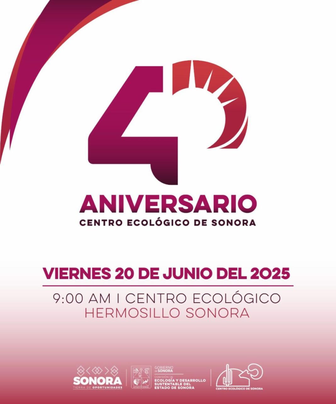 Hermosillo, Sonora; 18 de junio de 2025.– El Gobierno de Sonora, a través de la Comisión de Ecología y Desarrollo Sustentable del Estado de Sonora (CEDES), invita a la ciudadanía a conmemorar el 40 aniversario del Centro Ecológico de Sonora este viernes 20 de junio, con una jornada de actividades gratuitas enfocadas en la educación ambiental, la conservación y la recreación familiar.