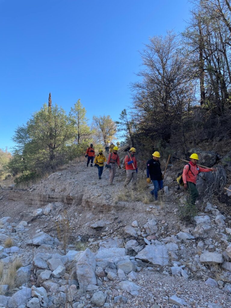 Hermosillo, Sonora; 18 de junio de 2025.- El Gobierno de Sonora, a través de la Coordinación Estatal de Protección Civil (CEPC), en trabajo conjunto con autoridades de los tres niveles de gobierno, incrementó a 50 el número de brigadistas que trabajan en el control y sofocación del incendio forestal registrado en el predio La Virgen, en el municipio de Agua Prieta.