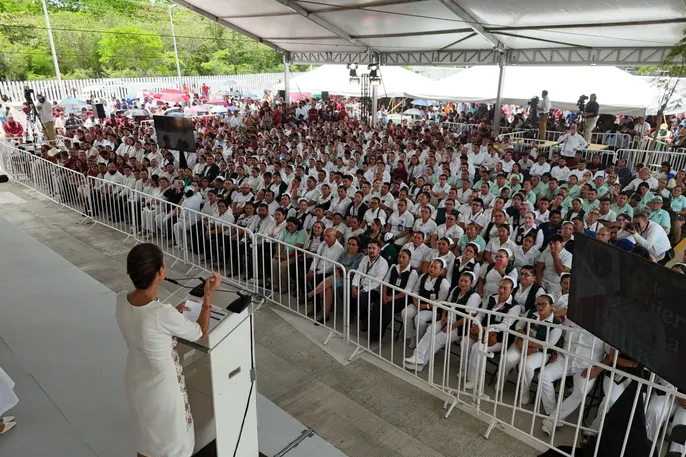“Les voy a dar una buena noticia en Campeche, que ahí vamos con el IMSS Bienestar poco a poco. En muy pocos días se contratan los 11 médicos faltan para que todos los centros de salud abran los siete días de la semana, 365 días del año”, agregó.