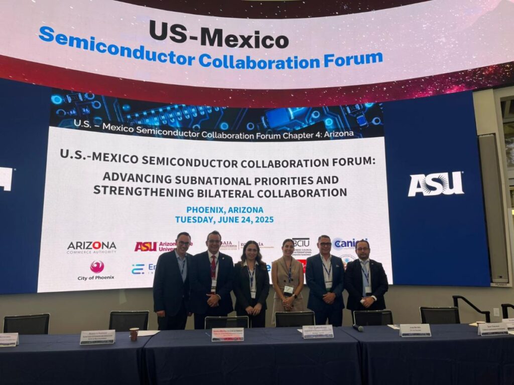 Hermosillo, Sonora; 25 de junio de 2025.- Con el objetivo de fortalecer la integración de la entidad en la cadena de suministro de Norteamérica y generar nuevas oportunidades para jóvenes técnicos y empresas del estado, el Gobierno de Sonora participó en el Foro Binacional de Colaboración en Semiconductores, realizado en Tempe, Arizona,