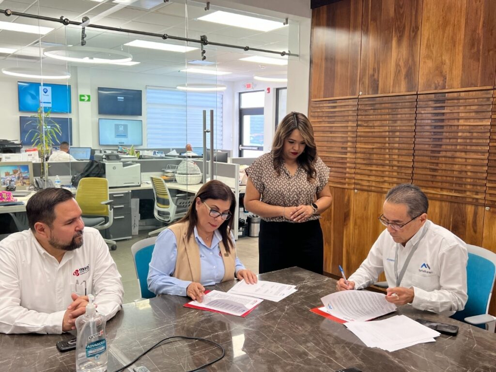 Margarita Vélez de la Rocha, directora general de Itesca, y José Armando Lee Quiroga, director general y apoderado legal de Grupo Tetakawi, firmaron un convenio de colaboración específico en educación dual, el cual beneficiará al alumnado de los nueve programas educativos con los que cuenta el Instituto.