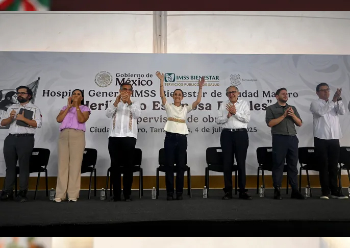 Ciudad Madero, Tamaulipas, a 4 de julio de 2025.- La Presidenta Claudia Sheinbaum Pardo anunció que el 15 de diciembre de este año se inaugurará el Hospital General del IMSS Bienestar “Heriberto Espinosa Rosales” en Ciudad Madero, Tamaulipas, que va a beneficiar a más de 500 mil personas y tendrá una inversión superior a los 650 millones de pesos (mdp).