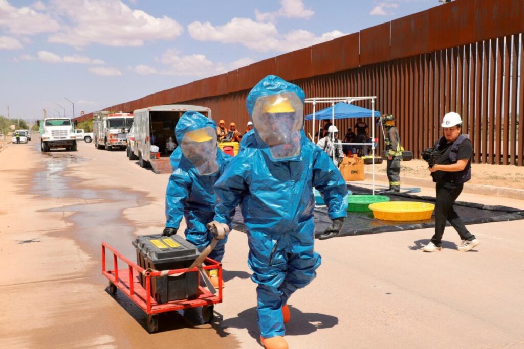 Hermosillo, Sonora; 11 de julio de 2025.- Con el objetivo de fortalecer la capacidad de respuesta ante emergencias químicas en zonas fronterizas, el Gobierno de Sonora, a través de la Coordinación Estatal de Protección Civil (CEPC) y en coordinación con autoridades de los tres niveles de gobierno de México y Estados Unidos, llevó a cabo el Simulacro Binacional Agua Prieta 2025 Dinapreq Sonora.