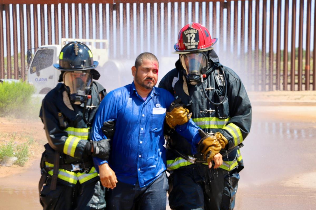 Este ejercicio, catalogado como Simulacro Mayor por Fuga de Gas Cloro, se desarrolló en la ciudad fronteriza de Agua Prieta con la participación de cuerpos de emergencia y rescate de ambos países.