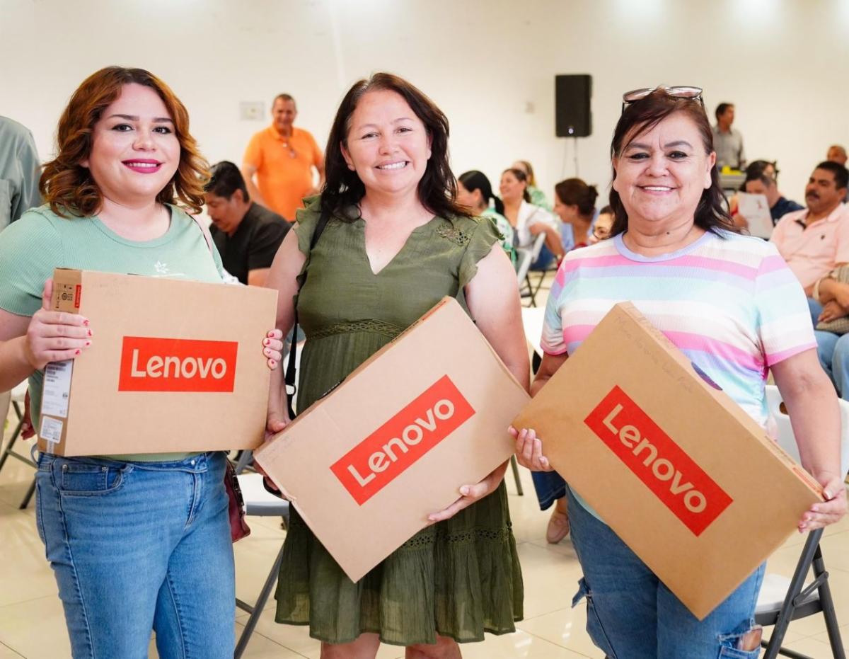 Durante su gira de trabajo por el noroeste del estado, también presidió la entrega de 139 computadoras en beneficio de docentes, como parte del Programa de Tecnologías Educativas y de la Información para el Magisterio de Educación Básica del Estado de Sonora, implementado en coordinación con la SEP y las secciones 28 y 54 del SNTE.