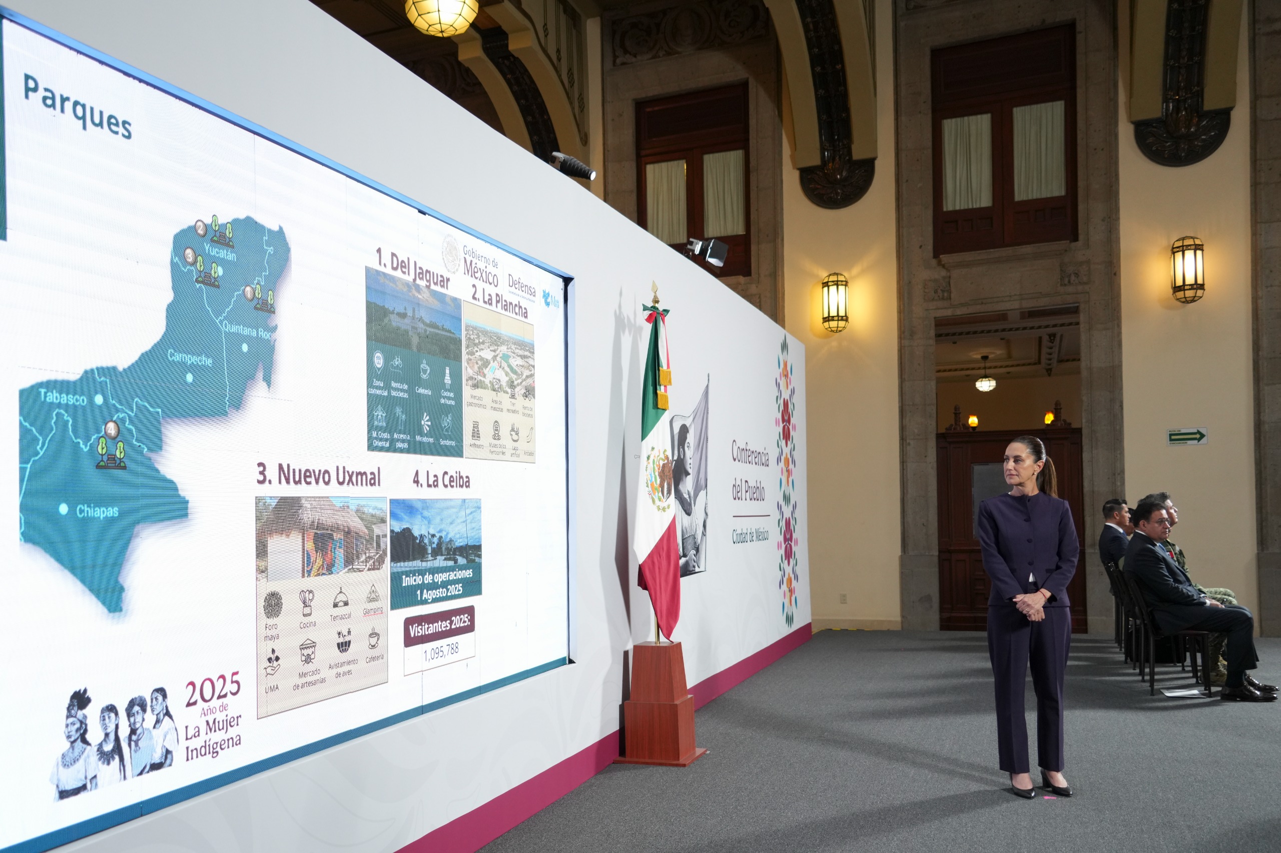 El director general de Grupo Mundo Maya, Adolfo Héctor Tonatiuh Velasco Bernal, puntualizó que los siete hoteles a cargo de la Defensa Nacional: Tulum, Calakmul, Palenque, Chichen Itzá, Edzná, Aeropuerto Tulum y Nuevo Uxmal, son categoría cuatro estrellas, cuentan con todas las amenidades, servicios y a la fecha han generado 986 empleos directos. Mientras que, los parques de Grupo Mundo Maya han recibido 8 millones 600 mil visitantes. Anunció que también cuentan con paquetes turísticos que incluyen vuelo redondo, hospedaje, actividades, alimentos y transporte que se pueden consultar en la página: hotelesgrupomundomaya.com