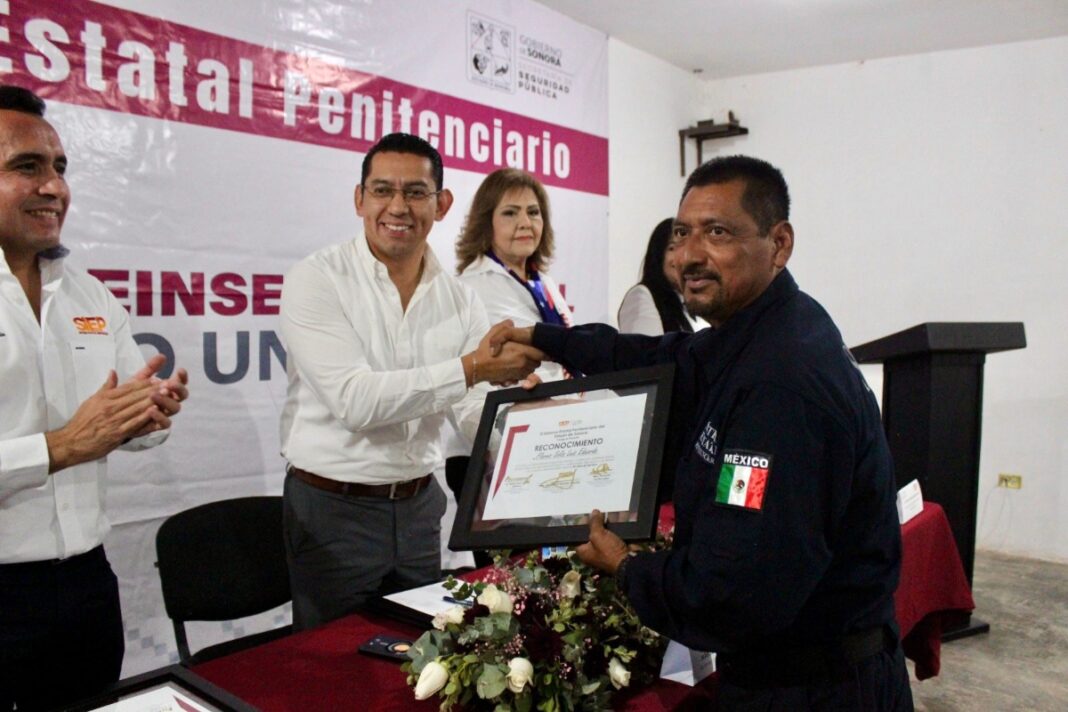 Como parte del evento, la Secretaría de Seguridad Pública entregó reconocimientos a empleados con 32, 30, 28 y 27 años de servicio ininterrumpido, cuya trayectoria ha contribuido de manera significativa a fortalecer un sistema penitenciario más humano, justo y eficiente, en concordancia con el proyecto de transformación que impulsa el gobernador Alfonso Durazo Montaño.