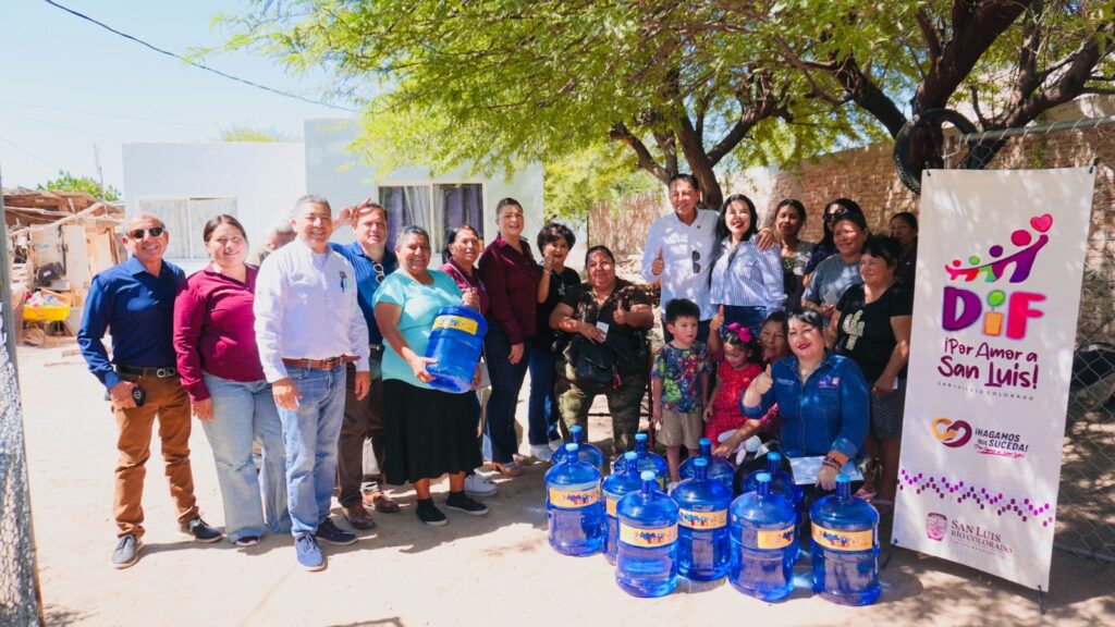 San Luis Río Colorado, Sonora (Agosto 18 de 2025).- En continuidad con los esfuerzos para garantizar el acceso al vital líquido a toda la comunidad, esta mañana el 30 Ayuntamiento, a través del DIF Municipal, en coordinación con Oomapas y Desarrollo Social, realizó la entrega de 220 garrafones de agua a familias de la colonia Topahue, como parte de la segunda etapa de la campaña “Agua para Todos”.