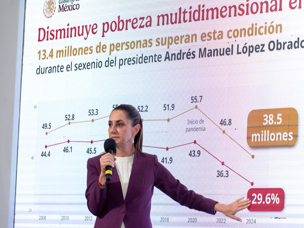 En este marco, la primera mandataria de la nación retomó la cifras de Instituto Nacional de Estadística y Geografía (INEGI), el cual indicó la semana pasada que entre 2019 y 2025 13.7 millones de mexicanos salieron de la pobreza en todo el país, lo cual volvió a calificar como “una hazaña”.
