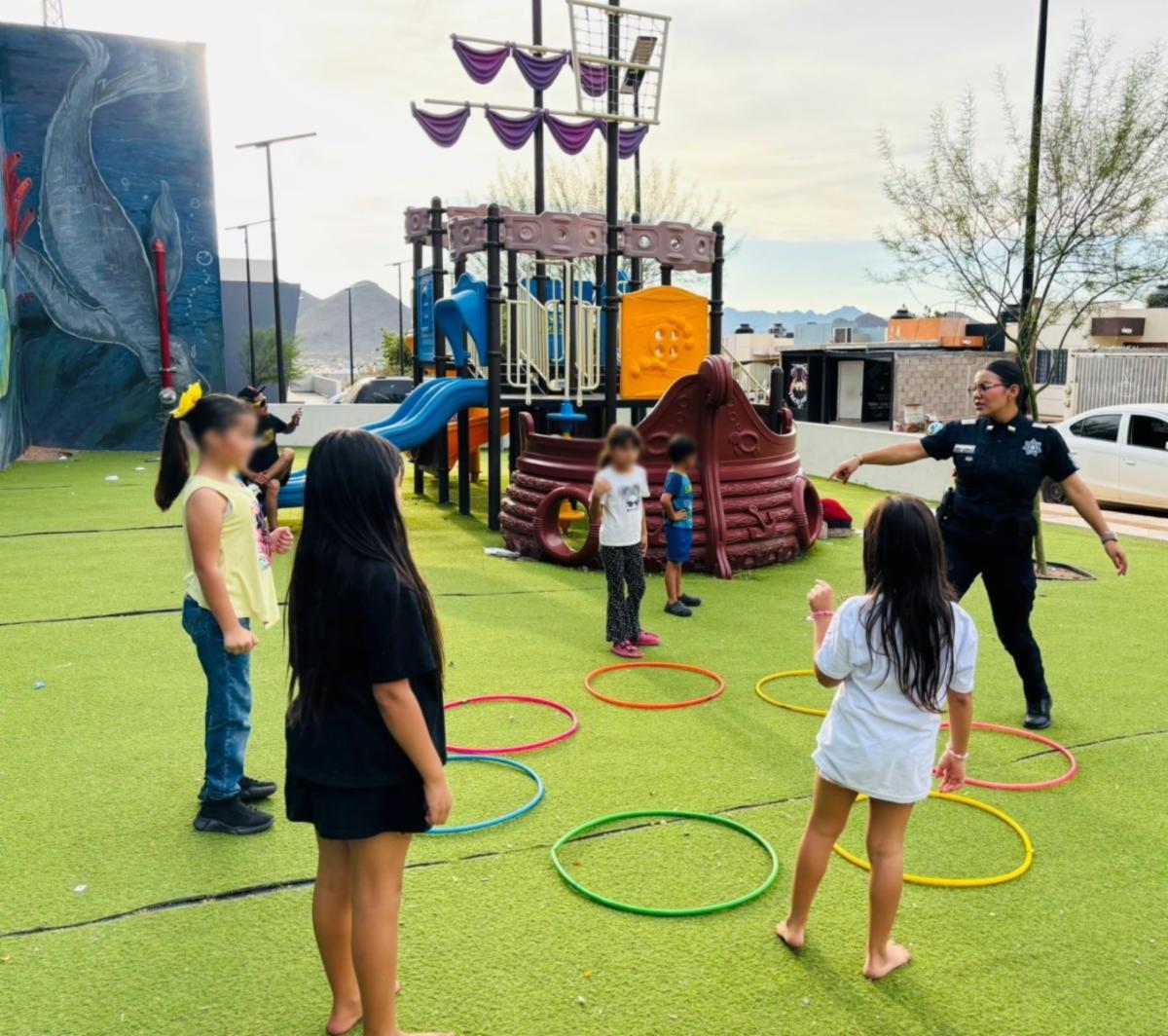 Además, como parte de la Jornada Permanente por la Paz que promueve la SSP Sonora, la Policía Estatal y el Centro de Prevención del Delito y Participación Ciudadana organizan actividades por las tardes para beneficio de las niñas, niños y familias del sector, mediante las cuales se da cumplimiento al eje de recreación social. También se brindan pláticas sobre el uso responsable del 9-1-1, prevención del maltrato animal y fomento de valores como la amistad, la responsabilidad y el trabajo en equipo.