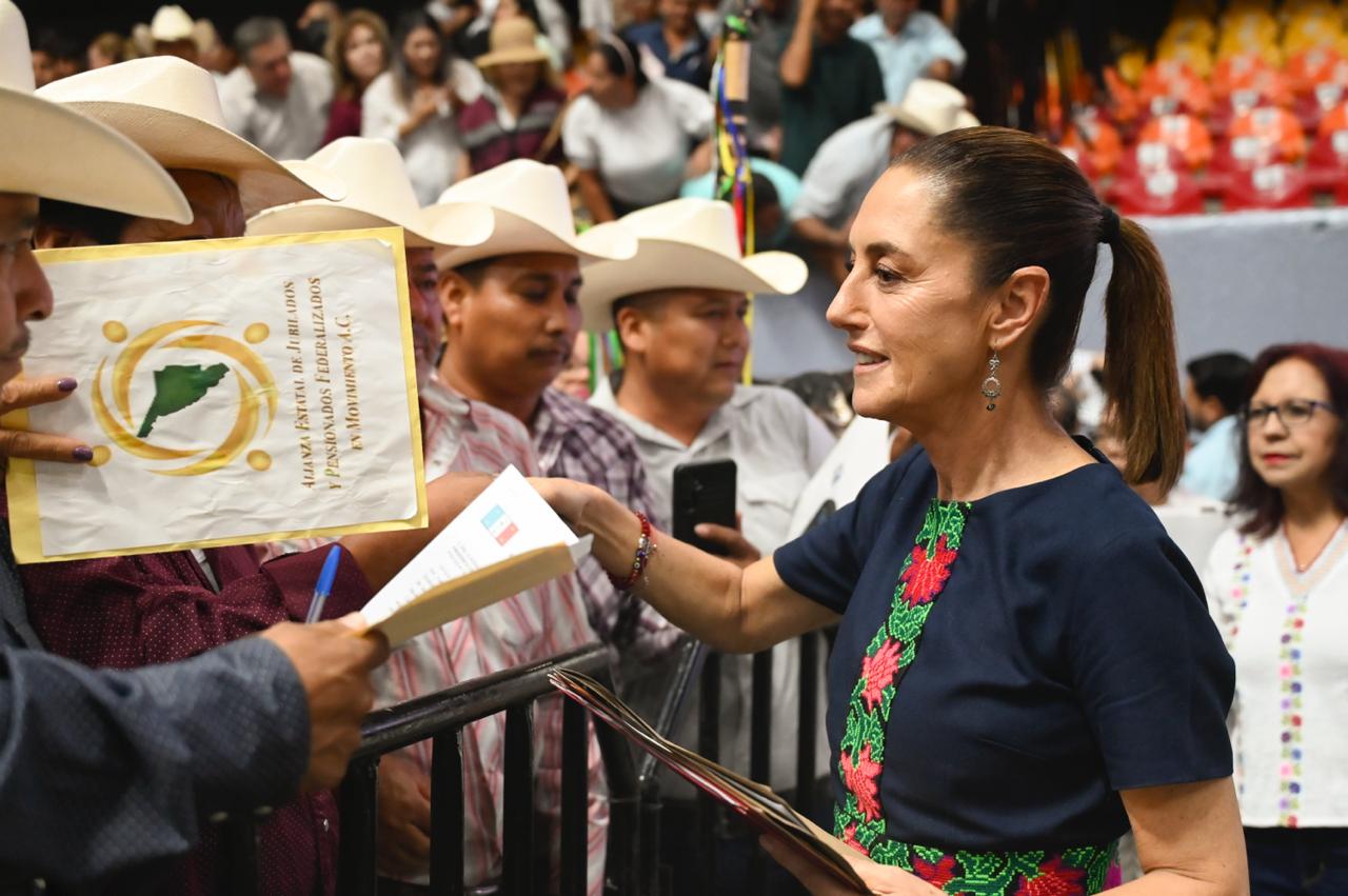 Además, mil 529 escuelas de educación básica y 98 preparatorias son intervenidas a través de La Escuela es Nuestra. Sobre la Pensión Mujeres Bienestar informó que en octubre arranca la distribución de tarjetas para que este año todas las mujeres de 60 a 64 años reciban un apoyo bimestral, además de que adolescentes de secundaria ya reciben la beca Rita Cetina; mientras que personas adultas mayores y con discapacidad ya reciben la visita médica por parte de Salud Casa por Casa.