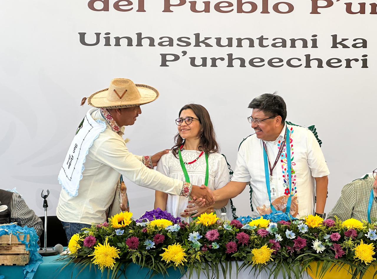 está comprometida con el Plan de Justicia del pueblo Purépecha, reconociendo que es un deber y una deuda histórica del Estado mexicano con los pueblos indígenas. Dijo que desde 1992, México se define como una nación pluricultural, sustentada en la diversidad de lenguas, culturas y historias de sus pueblos originarios.