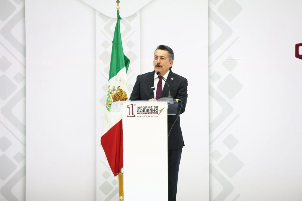 Con un formato ágil y sencillo, reforzado con vídeo, ante las y los integrante del cabildo cajemense, Senadoras y Senadores de la República, Legisladoras y Legisladores Federales, Diputadas y Diputados locales, funcionarias y funcionarios, representantes de Cámaras Empresariales, Rectores de diferentes Universidades, Sindicatos y la comunidad en general, el Presidente Municipal, entre otros logros del período que se informa, destacó que, en materia de Desarrollo Económico se trabajó en generar un entorno competitivo, atractivo y accesible para la inversión, facilitando la apertura de negocios, impulsando la gestión para la regularización de empresas y creando condiciones para el crecimiento económico sostenible.