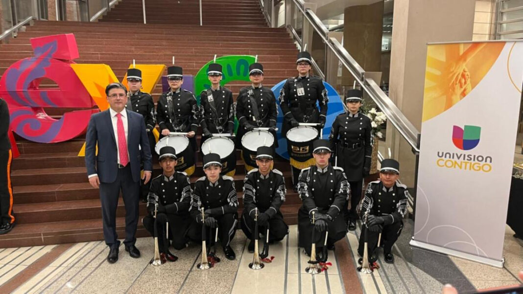 Hermosillo, Sonora; 17 de septiembre de 2025.- La Banda de Guerra y la Escolta de Bandera del Colegio de Bachilleres del Estado de Sonora (Cobach) realizaron una majestuosa presentación, por cuarto año consecutivo, en el tradicional Grito de Independencia organizado por el Consulado General de México en Phoenix, Arizona.