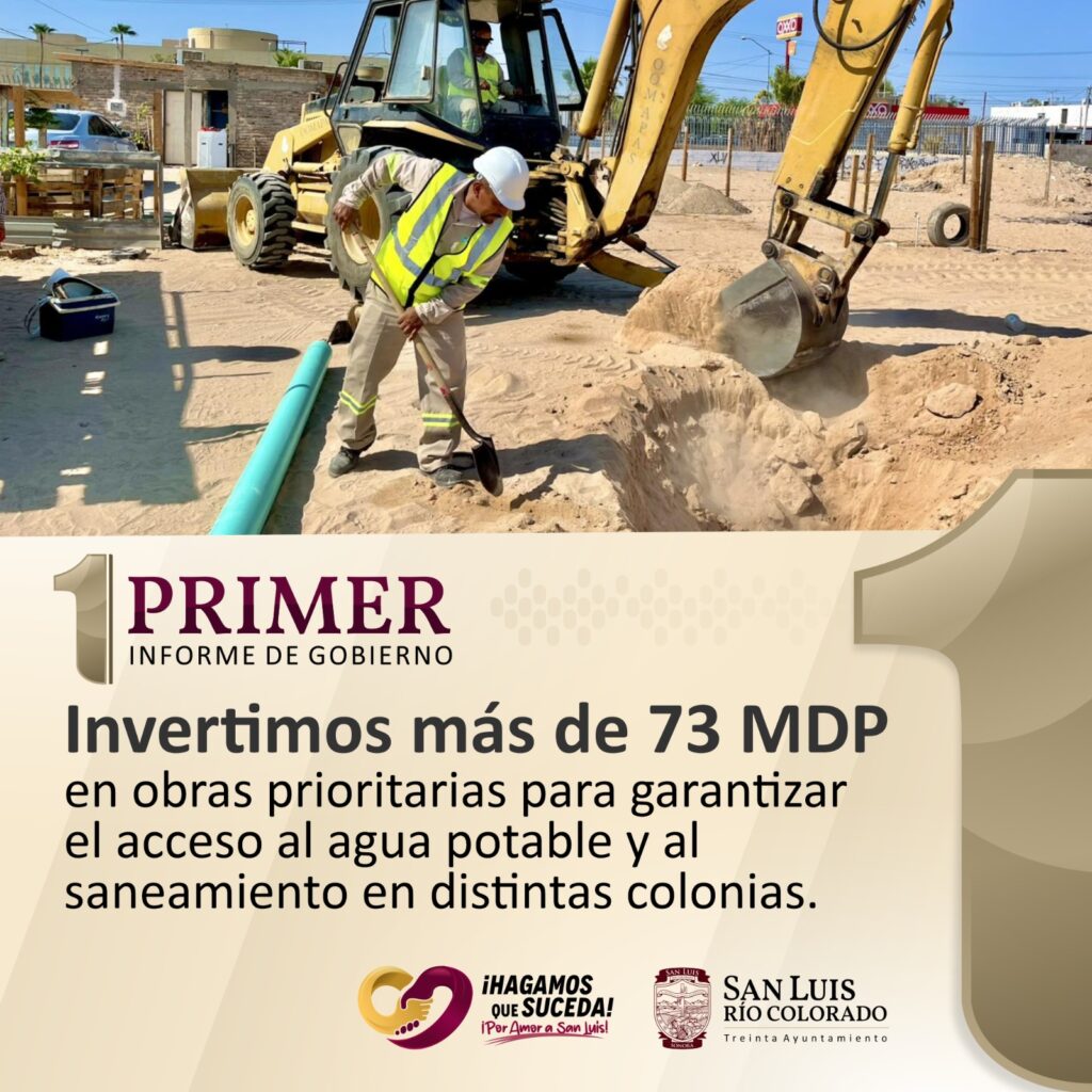 San Luis Río Colorado, Sonora (17 de septiembre de 2025).- Con el compromiso de garantizar el acceso al agua potable y al saneamiento digno como un derecho para todas las familias, el Organismo Operador Municipal de Agua Potable, Alcantarillado y Saneamiento (Oomapas) concretó una inversión histórica superior a los 73 millones de pesos en obras prioritarias.