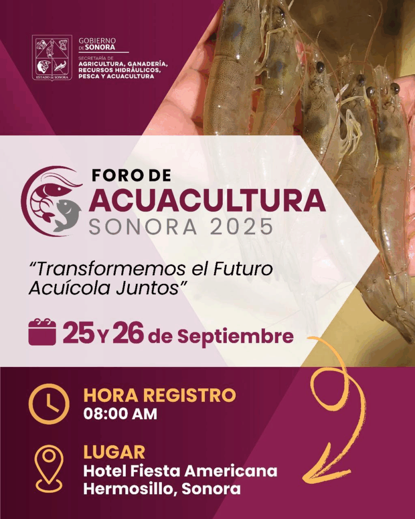 El Gobierno de Sonora invita a productores, estudiantes, investigadores y público interesado a participar en este foro, que representa un espacio estratégico para construir soluciones innovadoras y fortalecer el liderazgo de Sonora en la acuacultura nacional.