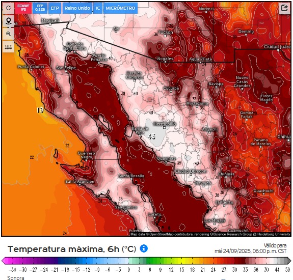 Asimismo, se informó que un nuevo frente frío se aproximará a la frontera noroeste del país durante los días 25 y 26 de septiembre, lo que ocasionará fuertes rachas de viento y un ligero descenso en las temperaturas, aunque con sensación térmica elevada.