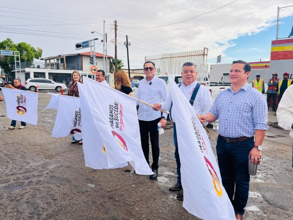 San Luis Río Colorado, Sonora (Septiembre 22 de 2025).- Con el firme propósito de mejorar la movilidad urbana y elevar la calidad de vida de los vecinos de las colonias Del Bosque y Federal, esta mañana el alcalde César Iván Sandoval Gámez, en compañía de regidores y funcionarios del 30 Ayuntamiento, dio el arranque oficial a los trabajos de pavimentación de la calle 12, en el tramo que conecta de la Av. Nuevo León a la Av. 20 de Noviembre A.