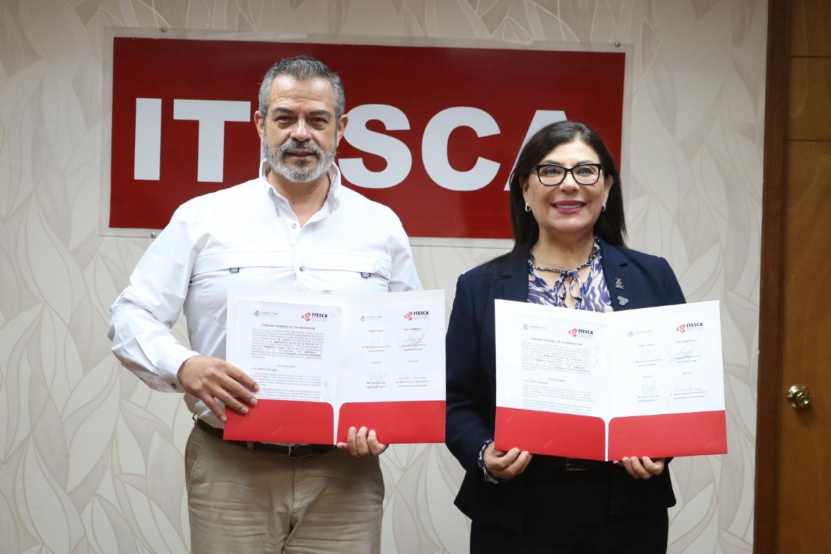 La directora general de Itesca, Margarita Vélez de la Rocha, y el representante legal de Sonora S. Plan S. de R.L. de C.V., Fernando Cardoso Becerril, firmaron el documento en el que se establecen objetivos específicos de colaboración en beneficio del alumnado.