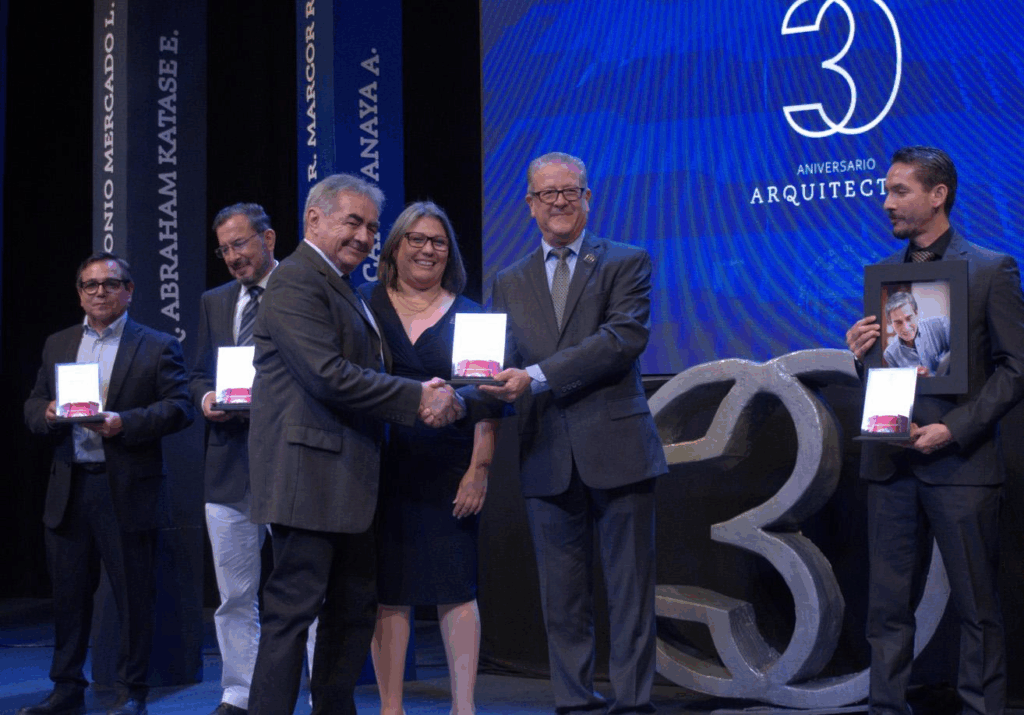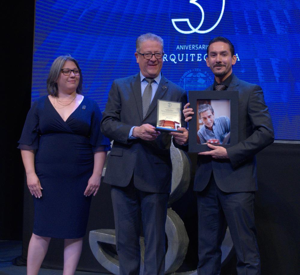 Parte central de la ceremonia fue el homenaje a los maestros fundadores. Bolado Martínez y Glenda Bethina Yanes Ordiales, jefa del Departamento de Arquitectura y Diseño, entregaron reconocimientos a los profesores fundadores, algunos de ellos aún en activo en las aulas.